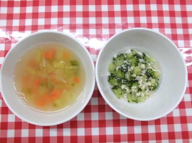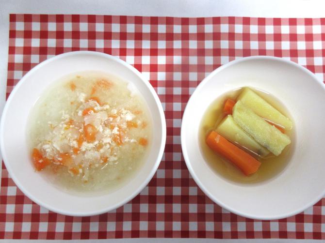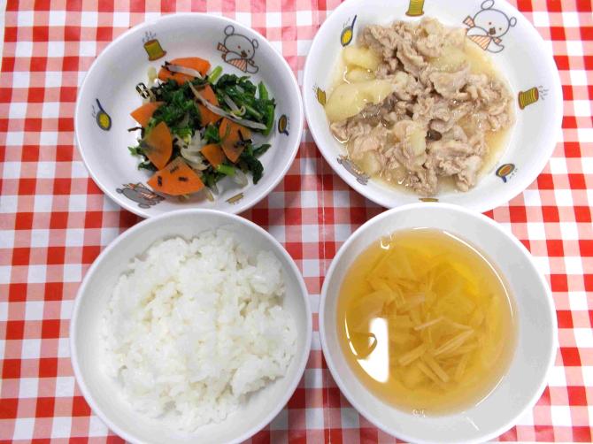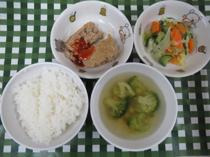 保育園の給食と栄養バランスを考えた夕食の献立です。
